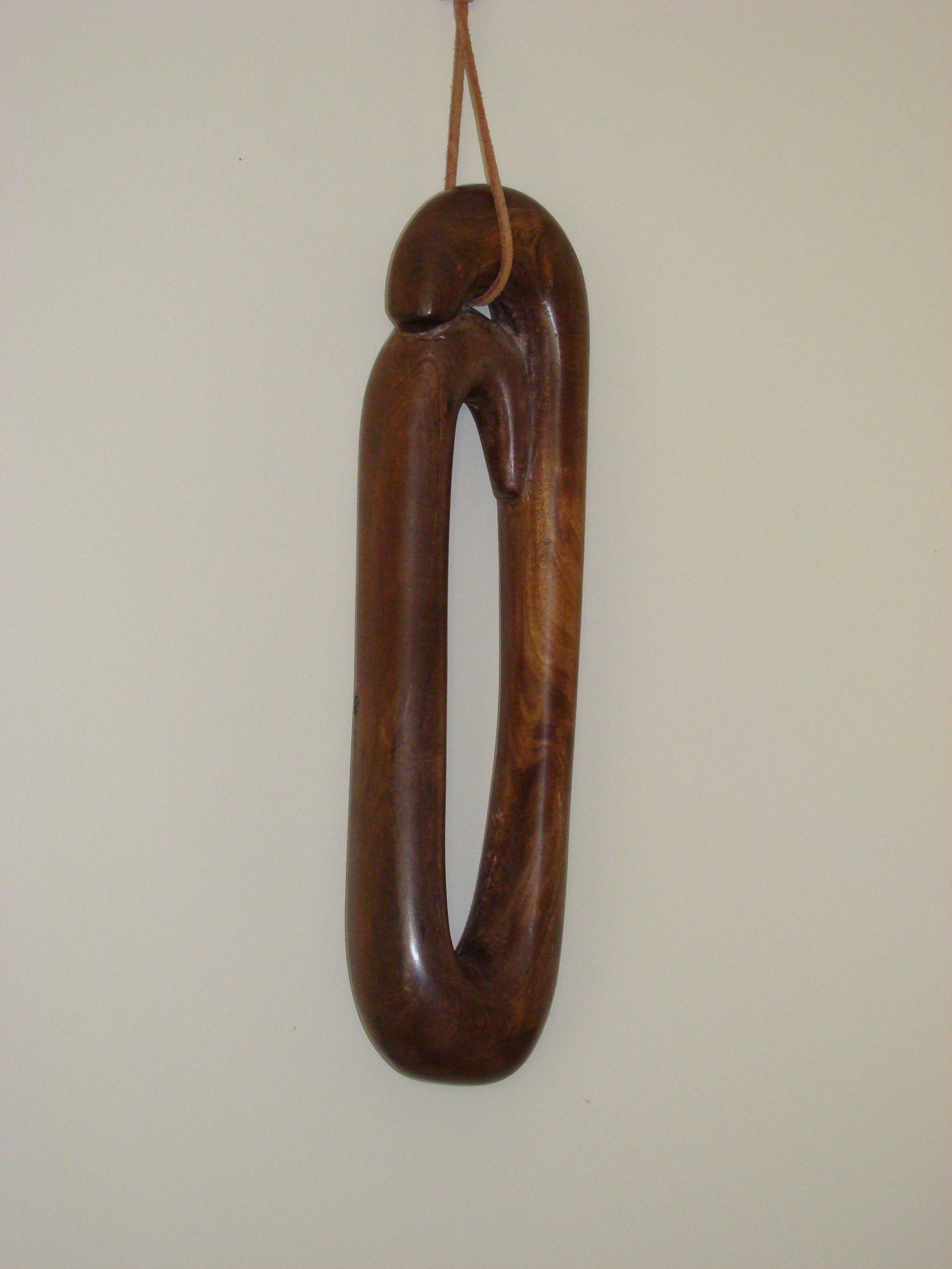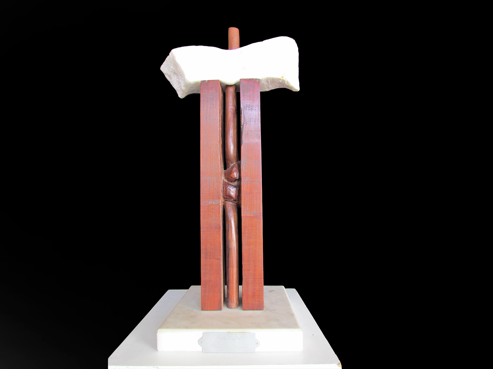 La trama, el nudo. La gubia se resiste a la convención de un rostro o una figura, para simplemente describir un símbolo. ¿Es el nudo gordiano que desafía nuestra comprensión? ¿Es la trama de nuestras soledades reu-nidas? ¿Es el deseo de reunir con sus manos lo distante?