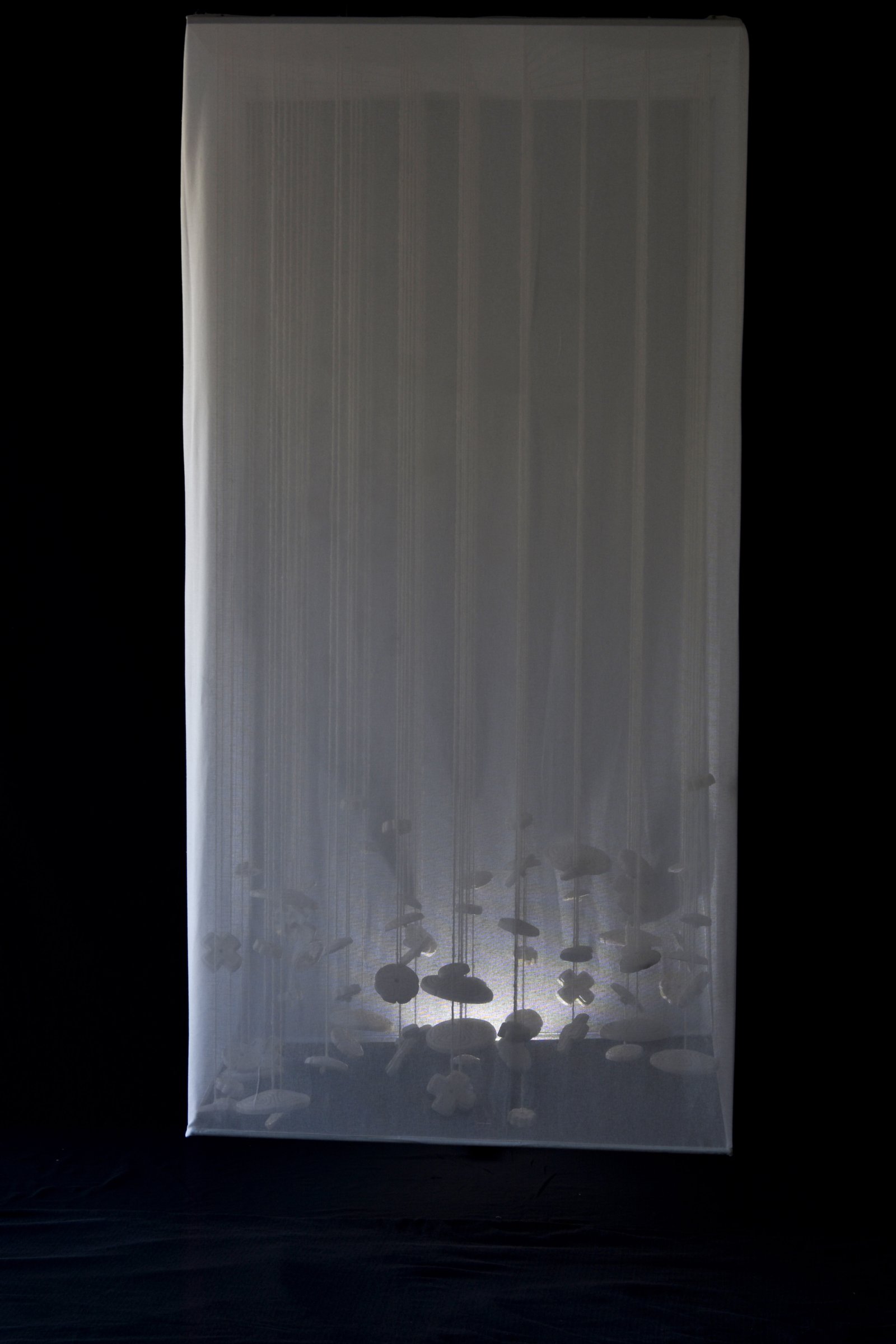 Cerámica esmaltada, fibras de lana , madera esmaltada, gasa de algodon