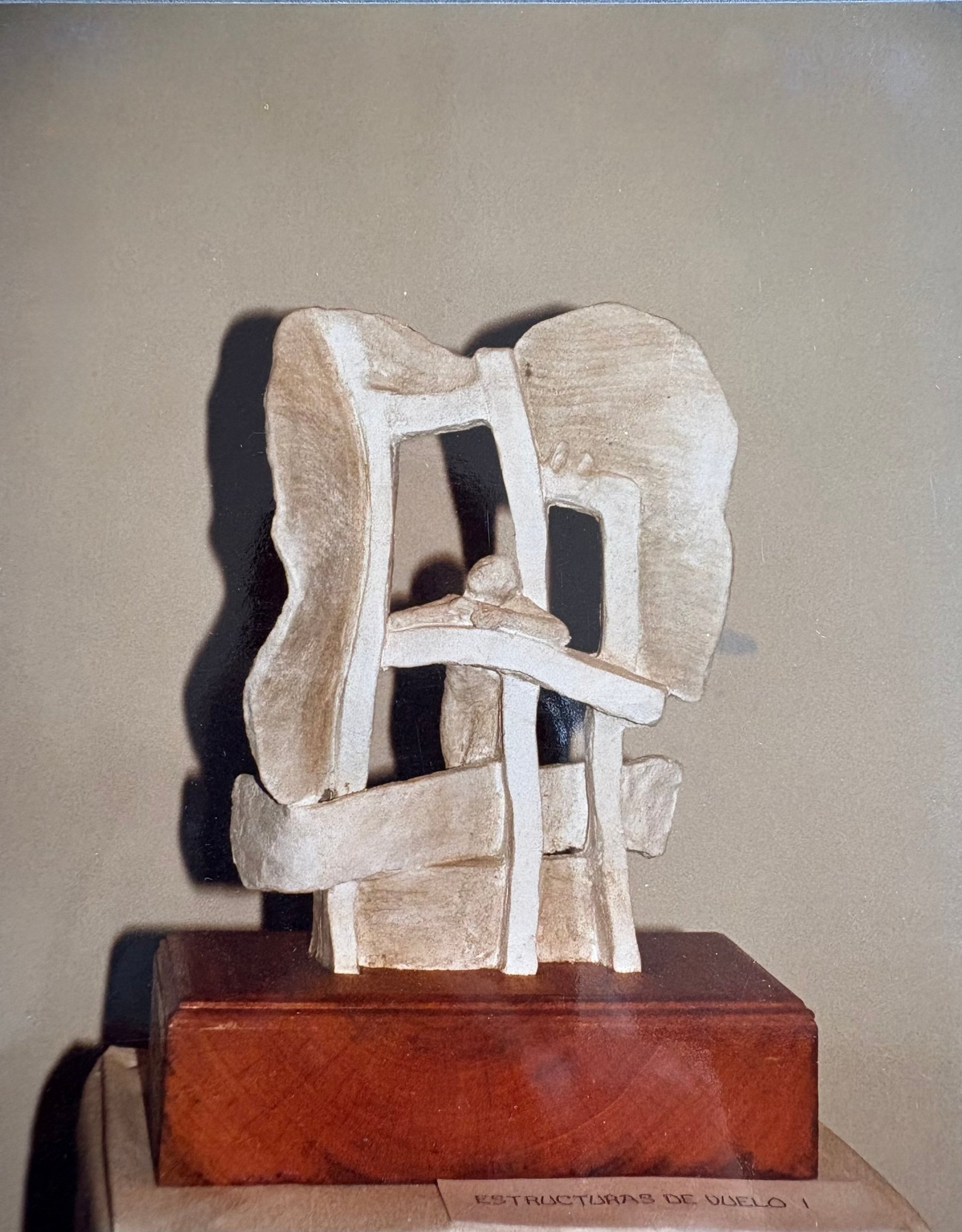 Eso pasa con las esculturas de Cecilia Teruel. Una escultora que, vamos, viene del arte conceptual y que, algunas veces, también ha pasado por la figuración. Y hoy, de pronto, estas pequeñas cosas, que son escultura en formato pequeño y resultan de un extraño equilibrio entre esas dos tensiones que enunciaba: el puro concepto por un lado, la pura figura por el otro.